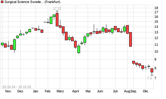 Mit dem Rücksetzer auf 7,80 EUR hat die Surgical Science Sweden-Aktie (ISIN SE0014428512) am 14.10.2025 ein neues 5-Jahres-Tief erreicht und damit den Kurs vom 01.10.2025 eingestellt.Die ...weiterlesen