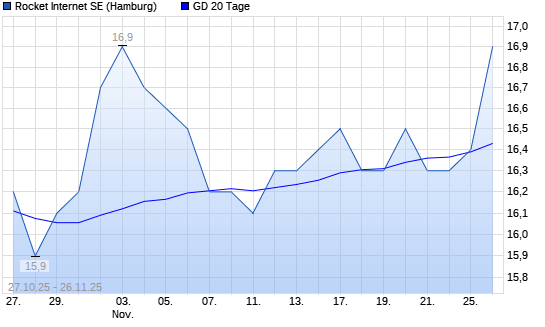 Mit dem Anstieg auf 16,40 EUR hat die Rocket Internet-Aktie am 25.11.2025 die 20-Tage-Linie nach oben gekreuzt.Die Rocket Internet-Aktie befindet sich seit dem 07.11.2025 im langfristigen Abwärtstrend ...weiterlesen