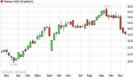 Mit dem Rücksetzer auf 12,54 EUR hat die Telenor-Aktie (ISIN NO0010063308) am 11.11.2025 ein neues 6-Monats-Tief erreicht und damit den Kurs vom 06.11.2025 eingestellt.Die Telenor-Aktie ...weiterlesen