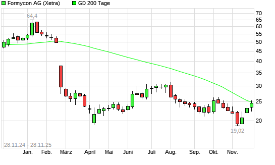 Mit dem Rücksetzer auf 24,40 EUR hat die Formycon-Aktie am 27.11.2025 die 200-Tage-Linie nach unten gekreuzt.Die Formycon-Aktie befand sich seit dem 26.11.2025 im langfristigen Aufwärtstrend ...weiterlesen