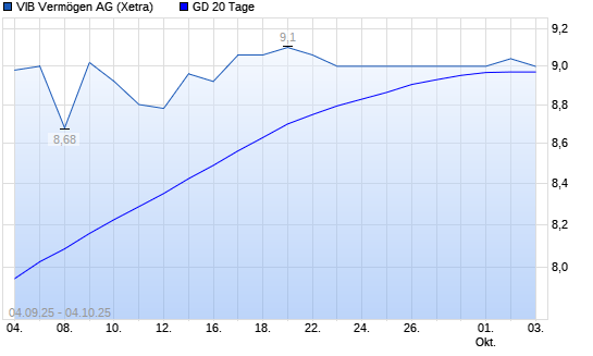 Mit dem Rücksetzer auf 8,86 EUR hat die VIB Vermogen AG-Aktie am 03.10.2025 die 20-Tage-Linie nach unten gekreuzt.Die VIB Vermogen AG-Aktie befindet sich seit dem 01.09.2025 im langfristigen ...weiterlesen