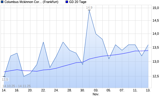 Mit dem Anstieg auf 13,60 EUR hat die Columbus McKinnon-Aktie am 13.11.2025 die 20-Tage-Linie nach oben gekreuzt.Die Columbus McKinnon-Aktie befindet sich seit dem 12.02.2025 im langfristigen ...weiterlesen