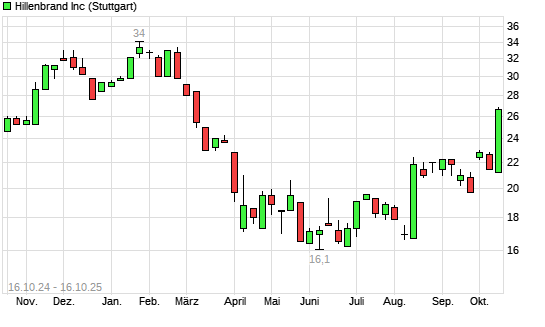 Mit dem Anstieg auf 26,60 EUR hat die Hillenbrand-Aktie (ISIN US4315711089) am 15.10.2025 ein neues 6-Monats-Hoch erreicht und damit den Kurs vom 03.10.2025 eingestellt.Die Hillenbrand-Aktie ...weiterlesen