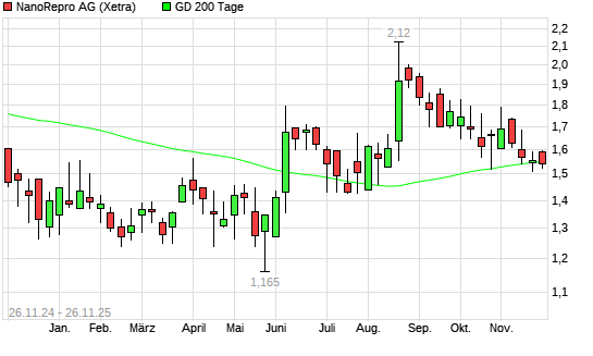 Mit dem Rücksetzer auf 1,44 EUR hat die NanoRepro-Aktie am 25.11.2025 die 200-Tage-Linie nach unten gekreuzt.Die NanoRepro-Aktie befand sich seit dem 24.11.2025 im langfristigen Aufwärtstrend ...weiterlesen