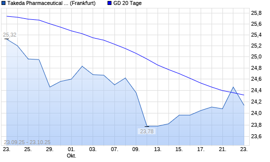 Mit dem Anstieg auf 24,46 EUR hat die Takeda Pharmaceutical-Aktie am 22.10.2025 die 20-Tage-Linie nach oben gekreuzt.Die Takeda Pharmaceutical-Aktie befindet sich seit dem 16.09.2025 im langfristigen ...weiterlesen