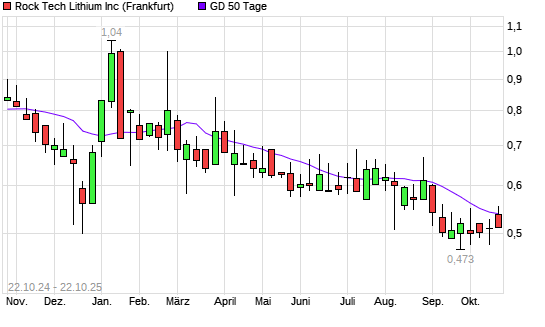 Mit dem Anstieg auf 0,55 EUR hat die Rock Tech Lithium-Aktie am 21.10.2025 die 50-Tage-Linie nach oben gekreuzt.Die Rock Tech Lithium-Aktie befindet sich seit dem 17.01.2025 im langfristigen ...weiterlesen