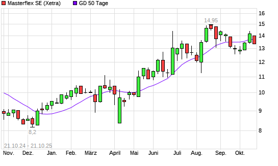 Mit dem Rücksetzer auf 13,20 EUR hat die Masterflex-Aktie am 20.10.2025 die 50-Tage-Linie nach unten gekreuzt.Die Masterflex-Aktie befindet sich seit dem 06.05.2025 im langfristigen Aufwärtstrend ...weiterlesen