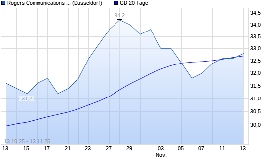 Mit dem Anstieg auf 32,80 EUR hat die Rogers Communications-Aktie am 12.11.2025 die 20-Tage-Linie nach oben gekreuzt.Die Rogers Communications-Aktie befindet sich seit dem 11.07.2025 im langfristigen ...weiterlesen