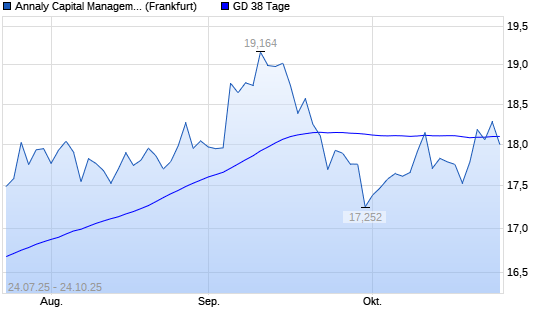 Mit dem Anstieg auf 18,28 EUR hat die ANNALY CAPITAL MANAGEMENT-Aktie am 23.10.2025 die 38-Tage-Linie nach oben gekreuzt.Die ANNALY CAPITAL MANAGEMENT-Aktie befindet sich seit dem 21.10.2025 ...weiterlesen