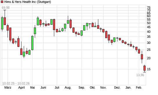 Mit dem Rücksetzer auf 15,97 EUR hat die Hims & Hers Health A-Aktie (ISIN US4330001060) am 09.02.2026 ein neues 12-Monats-Tief erreicht und damit den Kurs vom ...weiterlesen