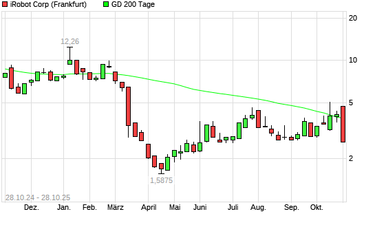 Mit dem Rücksetzer auf 3,22 EUR hat die iRobot-Aktie am 27.10.2025 die 200-Tage-Linie nach unten gekreuzt.Die iRobot-Aktie befand sich seit dem 23.10.2025 im langfristigen Aufwärtstrend ...weiterlesen