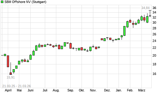 Mit dem Anstieg auf 34,54 EUR hat die SBM Offshore-Aktie (ISIN NL0000360618) am 20.03.2026 ein neues All-Time-High erreicht und damit den Kurs vom 12.03.2026 eingestellt.Die ...weiterlesen
