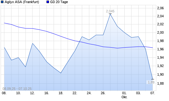 Mit dem Rücksetzer auf 1,92 EUR hat die Agilyx-Aktie am 06.10.2025 die 20-Tage-Linie nach unten gekreuzt.Die Agilyx-Aktie befindet sich seit dem 13.01.2025 im langfristigen Abwärtstrend ...weiterlesen