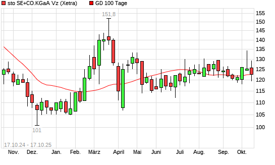 Mit dem Rücksetzer auf 120,20 EUR hat die Sto Vz-Aktie am 16.10.2025 die 100-Tage-Linie nach unten gekreuzt.Die Sto Vz-Aktie befindet sich seit dem 15.10.2025 im langfristigen Abwärtstrend ...weiterlesen