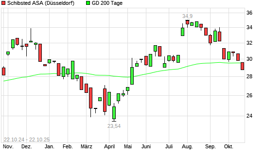 Mit dem Rücksetzer auf 28,76 EUR hat die Schibsted A-Aktie am 21.10.2025 die 200-Tage-Linie nach unten gekreuzt.Die Schibsted A-Aktie befand sich seit dem 07.05.2025 im langfristigen Abwärtstrend ...weiterlesen