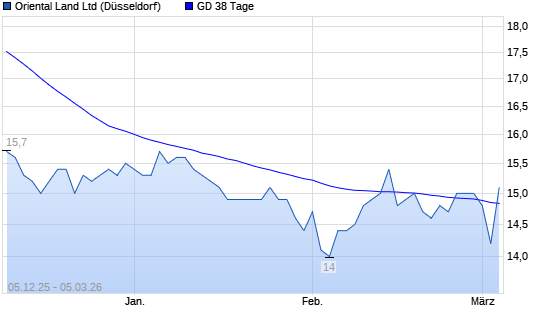 Mit dem Anstieg auf 15,00 EUR hat die Oriental Land-Aktie am 04.03.2026 die 38-Tage-Linie nach oben gekreuzt.Die Oriental Land-Aktie befindet sich seit dem 29.10.2025 im ...weiterlesen