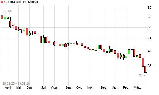 Mit dem Rücksetzer auf 32,96 EUR hat die General Mills-Aktie (ISIN US3703341046) am 18.03.2026 ein neues 5-Jahres-Tief erreicht und damit den Kurs vom 17.03.2026 ...weiterlesen