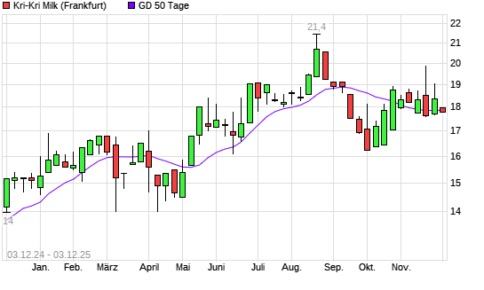 Mit dem Rücksetzer auf 17,80 EUR hat die Kri-Kri Milk-Aktie am 02.12.2025 die 50-Tage-Linie nach unten gekreuzt.Die Kri-Kri Milk-Aktie befindet sich seit dem 21.10.2025 im langfristigen ...weiterlesen