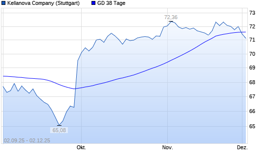 Mit dem Rücksetzer auf 71,00 EUR hat die Kellogg-Aktie am 01.12.2025 die 38-Tage-Linie nach unten gekreuzt.Die Kellogg-Aktie befindet sich seit dem 17.11.2025 im langfristigen Abwärtstrend ...weiterlesen