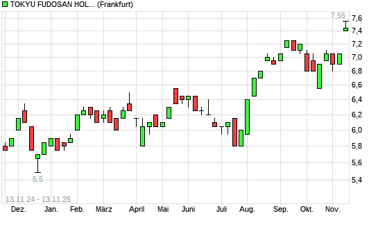 Mit dem Anstieg auf 7,55 EUR hat die Tokyu Fudosan Holdings-Aktie (ISIN JP3569200003) am 12.11.2025 ein neues 10-Jahres-Hoch erreicht und damit den Kurs vom 11.11.2025 eingestellt.Die Tokyu ...weiterlesen