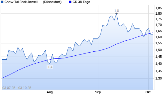 Mit dem Rücksetzer auf 1,62 EUR hat die CHOW TAI FOOK JEWEL.-Aktie am 02.10.2025 die 38-Tage-Linie nach unten gekreuzt.Die CHOW TAI FOOK JEWEL.-Aktie befindet sich seit dem 07.02.2025 im ...weiterlesen