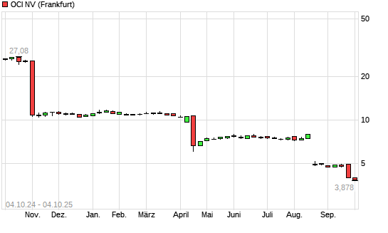 Mit dem Rücksetzer auf 3,88 EUR hat die OCI-Aktie (ISIN NL0010558797) am 03.10.2025 ein neues All-Time-Low erreicht und damit den Kurs vom 01.10.2025 eingestellt.Die OCI-Aktie befindet ...weiterlesen