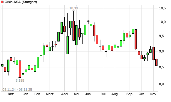 Mit dem Rücksetzer auf 8,59 EUR hat die Orkla-Aktie (ISIN NO0003733800) am 07.11.2025 ein neues 6-Monats-Tief erreicht und damit den Kurs vom 14.10.2025 eingestellt.Die Orkla-Aktie befindet ...weiterlesen