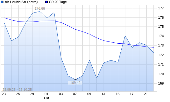 Mit dem Rücksetzer auf 171,84 EUR hat die Air Liquide-Aktie am 22.10.2025 die 20-Tage-Linie nach unten gekreuzt.Die Air Liquide-Aktie befindet sich seit dem 03.10.2025 im langfristigen ...weiterlesen