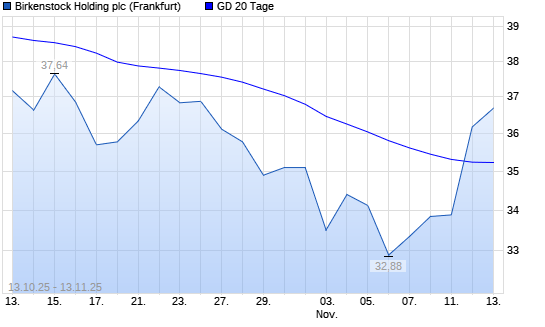 Mit dem Anstieg auf 36,18 EUR hat die Birkenstock Holding-Aktie am 12.11.2025 die 20-Tage-Linie nach oben gekreuzt.Die Birkenstock Holding-Aktie befindet sich seit dem 12.06.2025 im langfristigen ...weiterlesen