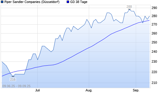 Mit dem Rücksetzer auf 272,00 EUR hat die Piper Jaffray-Aktie am 08.09.2025 die 38-Tage-Linie nach unten gekreuzt.Die Piper Jaffray-Aktie befindet sich seit dem 17.07.2025 im langfristigen ...weiterlesen