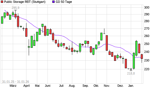 Mit dem Anstieg auf 229,40 EUR hat die Public Storage-Aktie am 30.01.2026 die 50-Tage-Linie nach oben gekreuzt.Die Public Storage-Aktie befindet sich seit dem 23.01.2026 im ...weiterlesen