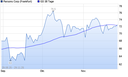 Mit dem Anstieg auf 72,50 EUR hat die Parsons-Aktie am 28.11.2025 die 38-Tage-Linie nach oben gekreuzt.Die Parsons-Aktie befindet sich seit dem 18.09.2025 im langfristigen Aufwärtstrend und ...weiterlesen