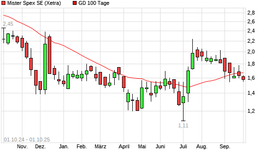 Mit dem Anstieg auf 1,66 EUR hat die Mister Spex-Aktie am 30.09.2025 die 100-Tage-Linie nach oben gekreuzt.Die Mister Spex-Aktie befindet sich seit dem 11.07.2025 im langfristigen Aufwärtstrend ...weiterlesen