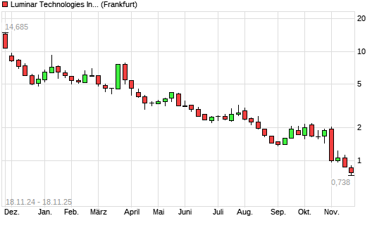 Mit dem Rücksetzer auf 0,78 EUR hat die Luminar Technologies-Aktie (ISIN US5504243032) am 17.11.2025 ein neues All-Time-Low erreicht und damit den Kurs vom 14.11.2025 eingestellt.Der Abstand ...weiterlesen