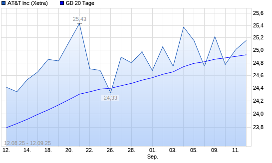Mit dem Anstieg auf 25,04 EUR hat die AT&T-Aktie am 11.09.2025 die 20-Tage-Linie nach oben gekreuzt.Die AT&T-Aktie befindet sich seit dem 21.07.2025 im langfristigen Aufwärtstrend und hat ...weiterlesen