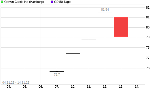 Mit dem Rücksetzer auf 80,58 EUR hat die Crown Castle International-Aktie am 13.11.2025 die 50-Tage-Linie nach unten gekreuzt.Die Crown Castle International-Aktie befindet sich seit dem ...weiterlesen
