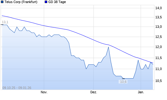 Mit dem Anstieg auf 11,30 EUR hat die Telus-Aktie am 08.01.2026 die 38-Tage-Linie nach oben gekreuzt.Die Telus-Aktie befindet sich seit dem 10.09.2025 im langfristigen Abwärtstrend und ...weiterlesen