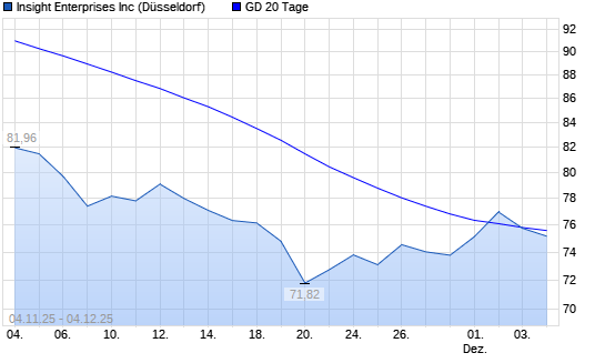 Mit dem Anstieg auf 75,90 EUR hat die Insight Enterprises-Aktie am 03.12.2025 die 20-Tage-Linie nach oben gekreuzt.Die Insight Enterprises-Aktie befindet sich seit dem 31.10.2024 im langfristigen ...weiterlesen