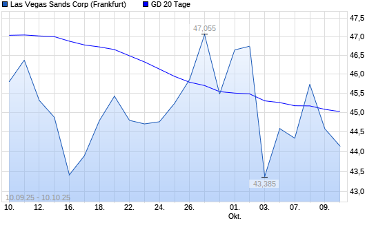 Mit dem Rücksetzer auf 44,59 EUR hat die Las Vegas Sands-Aktie am 09.10.2025 die 20-Tage-Linie nach unten gekreuzt.Die Las Vegas Sands-Aktie befindet sich seit dem 24.07.2025 im langfristigen ...weiterlesen