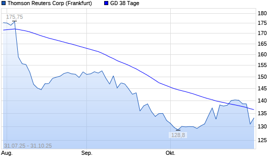 Mit dem Rücksetzer auf 130,95 EUR hat die Thomson Reuters Corp.-Aktie am 30.10.2025 die 38-Tage-Linie nach unten gekreuzt.Die Thomson Reuters Corp.-Aktie befindet sich seit dem 06.08.2025 ...weiterlesen