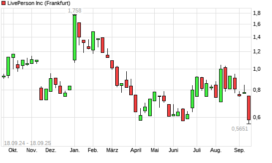 Mit dem Rücksetzer auf 0,57 EUR hat die LivePerson-Aktie (ISIN US5381461012) am 17.09.2025 ein neues 12-Monats-Tief erreicht und damit den Kurs vom 13.06.2025 eingestellt.Die LivePerson-Aktie ...weiterlesen