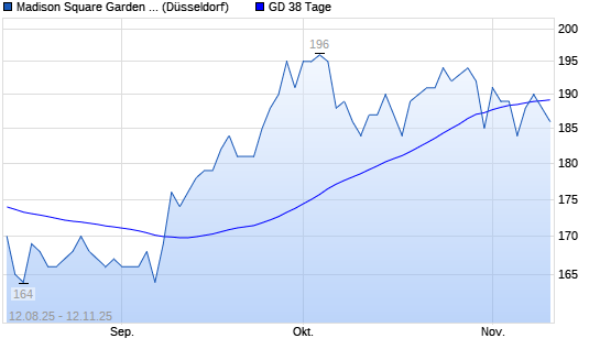 Mit dem Anstieg auf 189,00 EUR hat die Madison Square Garden Sports A-Aktie am 11.11.2025 die 38-Tage-Linie nach oben gekreuzt.Die Madison Square Garden Sports A-Aktie befindet sich seit dem ...weiterlesen