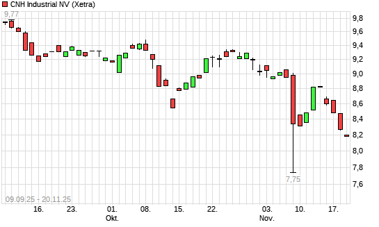 Mit dem Rücksetzer auf 8,05 EUR hat die CNH Industrial-Aktie (ISIN NL0010545661) am 19.11.2025 ein neues 3-Jahres-Tief erreicht und damit den Kurs vom 18.11.2025 eingestellt.Die CNH Industrial-Aktie ...weiterlesen
