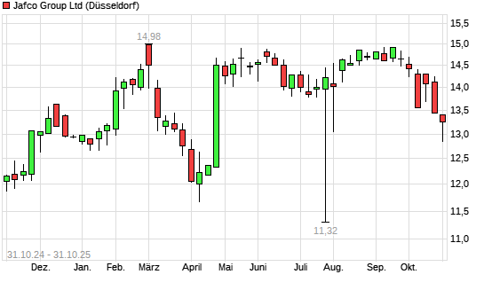 Mit dem Rücksetzer auf 13,10 EUR hat die Jafco-Aktie (ISIN JP3389900006) am 30.10.2025 ein neues 6-Monats-Tief erreicht und damit den Kurs vom 29.10.2025 eingestellt.Die Jafco-Aktie befindet ...weiterlesen