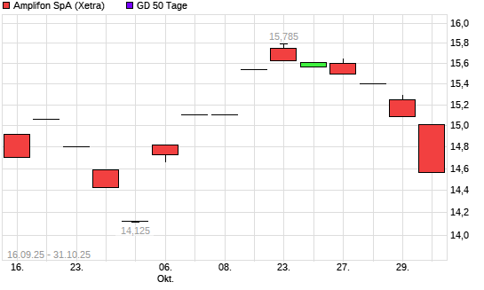 Mit dem Rücksetzer auf 14,43 EUR hat die Amplifon Milano-Aktie am 30.10.2025 die 50-Tage-Linie nach unten gekreuzt.Die Amplifon Milano-Aktie befindet sich seit dem 08.07.2024 im langfristigen ...weiterlesen