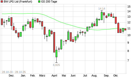 Mit dem Rücksetzer auf 10,90 EUR hat die BW LPG-Aktie am 27.10.2025 die 200-Tage-Linie nach unten gekreuzt.Die BW LPG-Aktie befand sich seit dem 24.10.2025 im langfristigen Aufwärtstrend ...weiterlesen