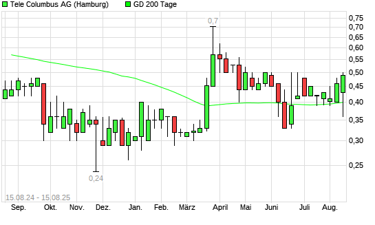 Mit dem Anstieg auf 0,48 EUR hat die Tele Columbus-Aktie am 14.08.2025 die 200-Tage-Linie nach oben gekreuzt.Die Tele Columbus-Aktie befand sich seit dem 13.08.2025 im langfristigen Abwärtstrend ...weiterlesen