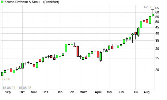 Mit dem Anstieg auf 59,98 EUR hat die Kratos Defense & Security Solutions-Aktie (ISIN US50077B2079) am 14.08.2025 ein neues 10-Jahres-Hoch erreicht und damit den Kurs vom 12.08.2025 eingestellt.Die ...weiterlesen