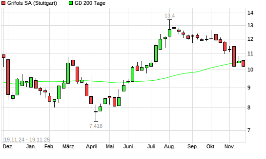 Mit dem Rücksetzer auf 10,25 EUR hat die Grifols-Aktie am 18.11.2025 die 200-Tage-Linie nach unten gekreuzt.Die Grifols-Aktie befand sich seit dem 10.11.2025 im langfristigen Aufwärtstrend ...weiterlesen