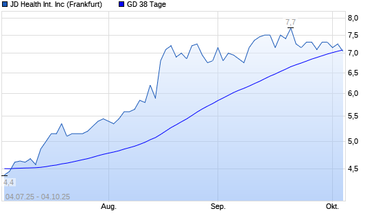 Mit dem Rücksetzer auf 7,05 EUR hat die JD Health-Aktie am 03.10.2025 die 38-Tage-Linie nach unten gekreuzt.Die JD Health-Aktie befindet sich seit dem 08.04.2025 im langfristigen Aufwärtstrend ...weiterlesen